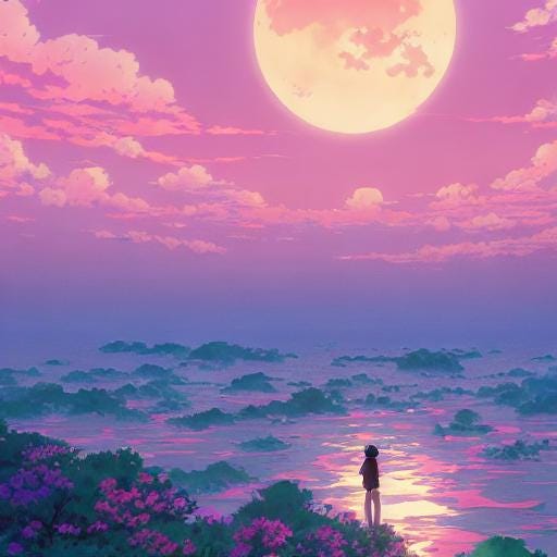 A Pink Sky with Three Moons
